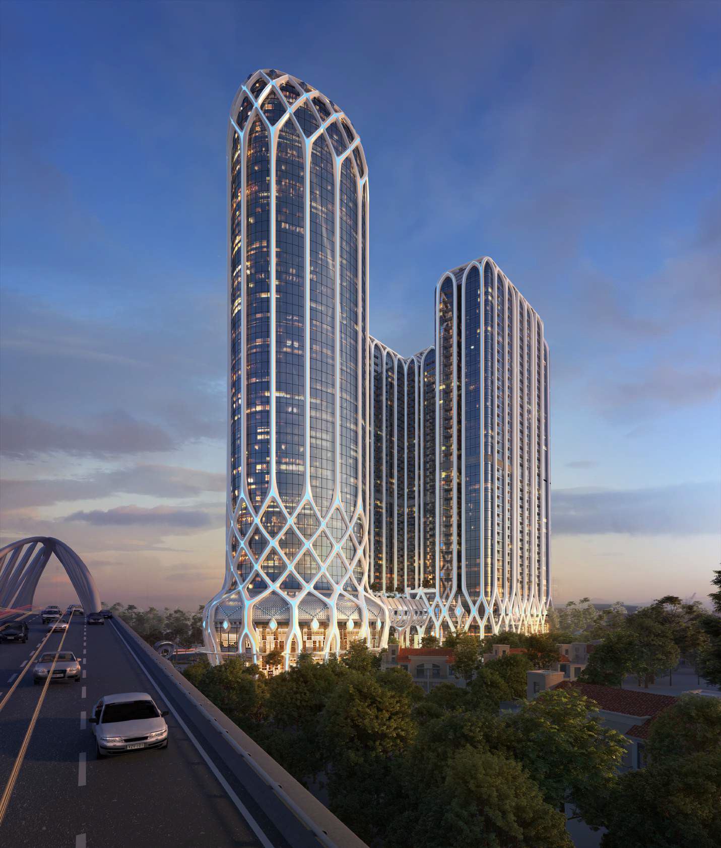 Trong đó, nổi bật nhất là tòa tháp khách sạn – the Signature – (45 tầng) với thiết kế độc đáo, lấy cảm hứng từ vương miện và hoa sen Việt Nam. Và tòa chung cư 39 tầng được thiết kế theo hình chữ U. Đây cũng chính là điểm nhấn trong thiết kế của dự án Hạng sang Diamond Crown Hải phòng