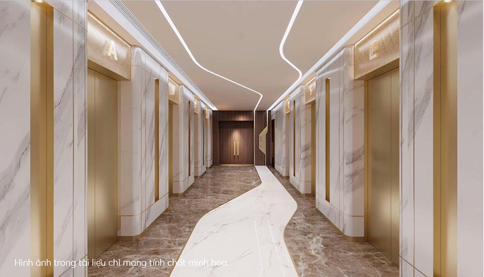 Dự án chào đón các chủ nhân tương lai bằng hành lang căn hộ và sảnh thang máy rộng rãi, ốp đá cao cấp sánh ngang đẳng cấp của khách sạn 5 sao; thang máy dát vàng với trần cao 2,7 m, tốc độ 1s/tầng đến từ thương hiệu KONE – Tập đoàn hàng đầu thế giới về thang máy; toàn bộ hành lang và thang máy đều được lắp đặt hệ thống điều hòa…