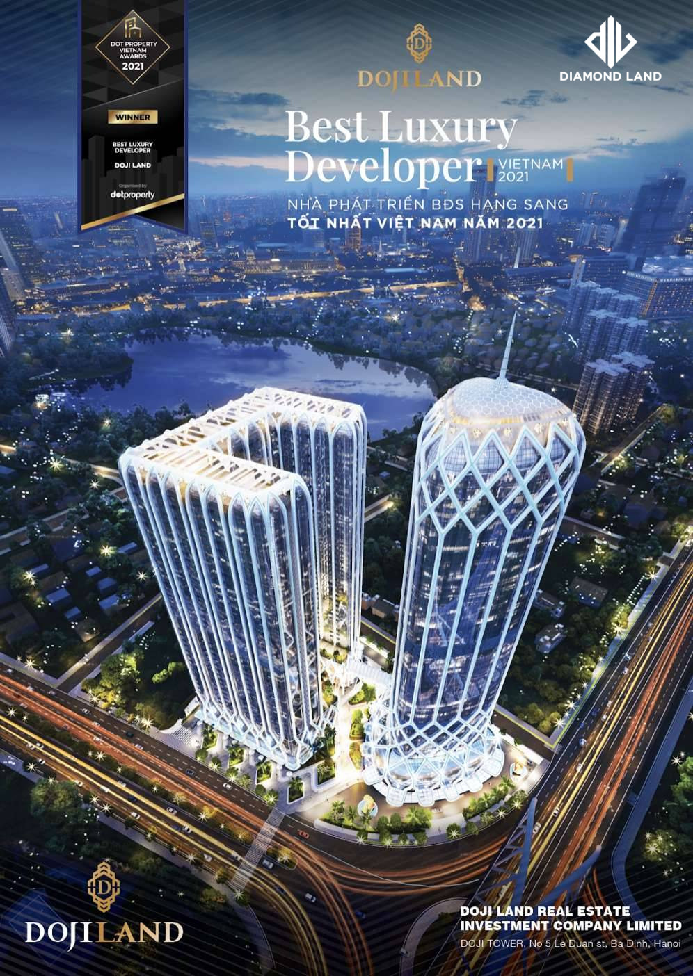 Best Luxury Developer Vietnam 2021 (“Nhà phát triển BĐS hạng sang tốt nhất Việt Nam năm 2021”) nhờ những thành tựu trong lĩnh vực BĐS, công ty hiện nắm trong tay hàng loạt dự án vang danh với vị trí đắc địa, khả năng sinh lời vượt trội và một yếu tố quan trọng giúp DOJILAND được vinh danh ở hạng mục này chính là triết lý phát triển bền vững thông qua các hoạt động vì cộng đồng.